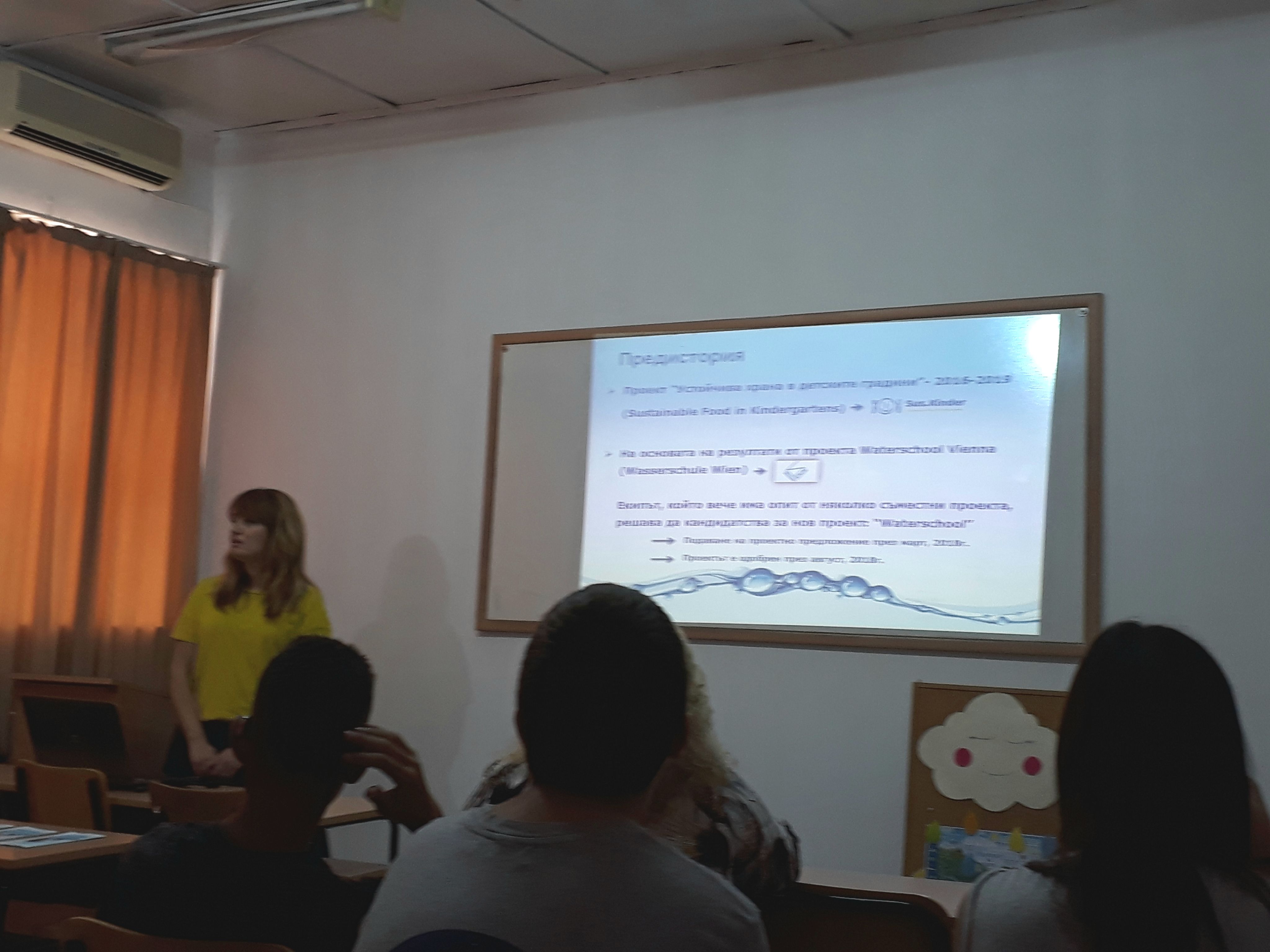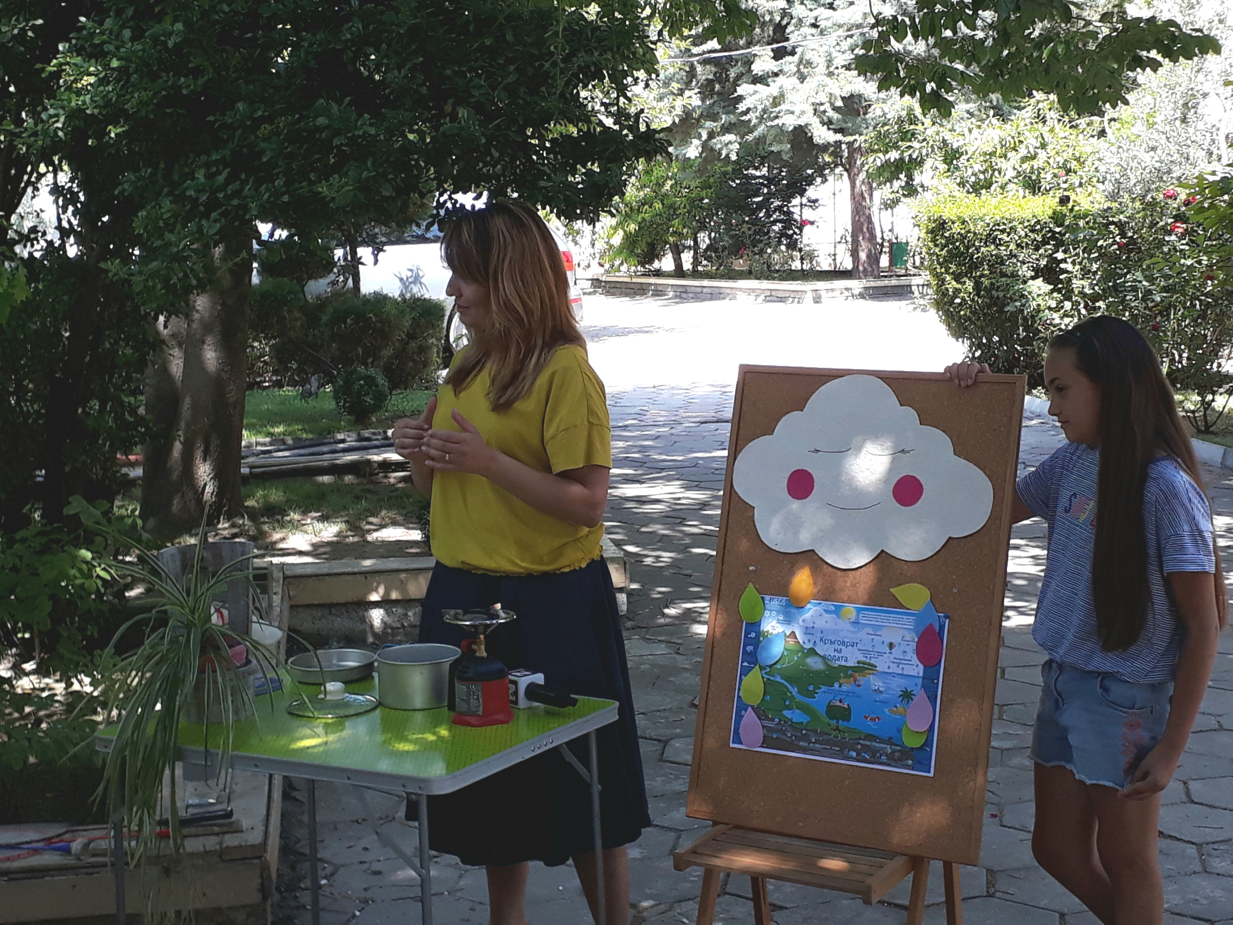 В рамките на третата партньорска среща бе проведен открит урок с учениците от ЧСБУ "Талантите". Децата научиха как се образуват облаците, разбраха, че растенията също се "потят" и защо е важно да пием поне по литър вода на ден. Децата учстваха активно по темата за кръговрата на водата и демонстрираха интерес и трайни знания.