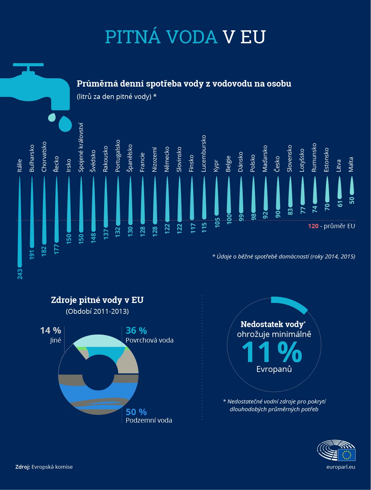 Dostupnost vody a sociálně-ekonomická aktivita v Evropě jsou nerovnoměrně rozloženy, což vede k velkým rozdílům v úrovni kvality vody v ročních obdobích a regionech. Poptávka po vodě v Evropě v posledních 50 letech neustále rostla, částečně kvůli růstu populace. To vedlo k celkovému poklesu obnovitelných zdrojů vody na hlavu o 24% v celé Evropě. Tento pokles je patrný zejména v jižní Evropě, způsobené hlavně nižšími srážkami. Například v létě 2015 bylo obnovitelných zdrojů sladké vody (jako jsou podzemní vody, jezera, řeky nebo nádrže) o 20% méně než ve stejném období v roce 2014 z důvodu 10% čistého poklesu srážek. Více lidí, kteří se přestěhovali do měst, ovlivnilo také poptávku, zejména v hustě obydlených oblastech.